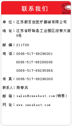 聯系人:陳春兵 地址:江蘇省盱眙縣工業園區迎春大道5號 郵編:211700 互聯網藥品信息服務資格證書號:(蘇)-非經營性-2023-0029 醫療器械投拆舉報電話:12315 電話:0086-517-88296001 88296008 0086-517-88295866 傳真:0086-517-88296000 網址:www.cnwebest_com.u4816.cn E-mail:sales@cnwebest_com.u4816.cn(銷售) 后臺管理 郵箱登錄 備案號:蘇ICP備17002214號-1 |